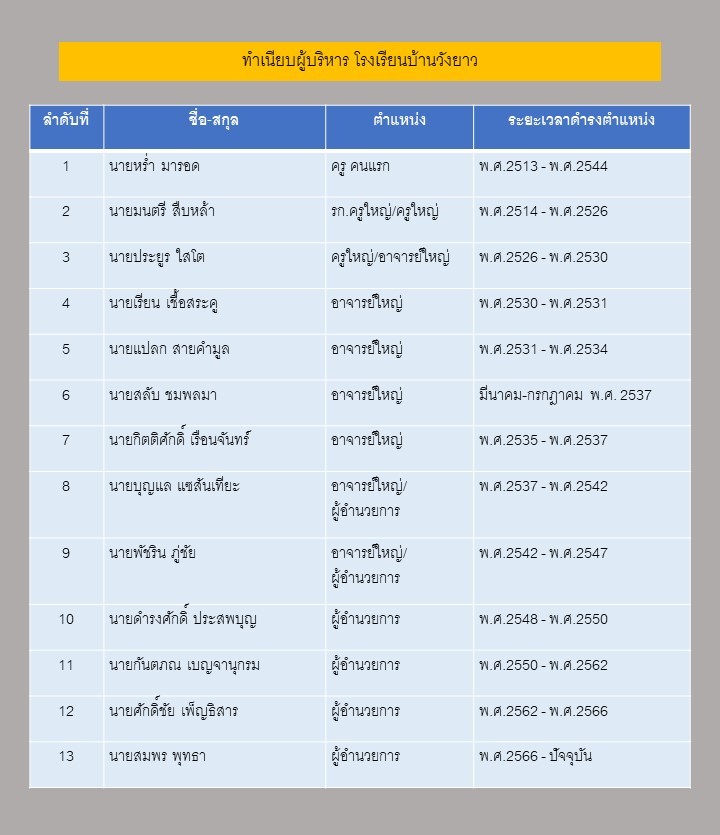 ชื่อ-สกุลทำเนียบผู้บริหารโรงเรียนบ้านวังยาว สพป.เพชรบูรณ์ เขต 2